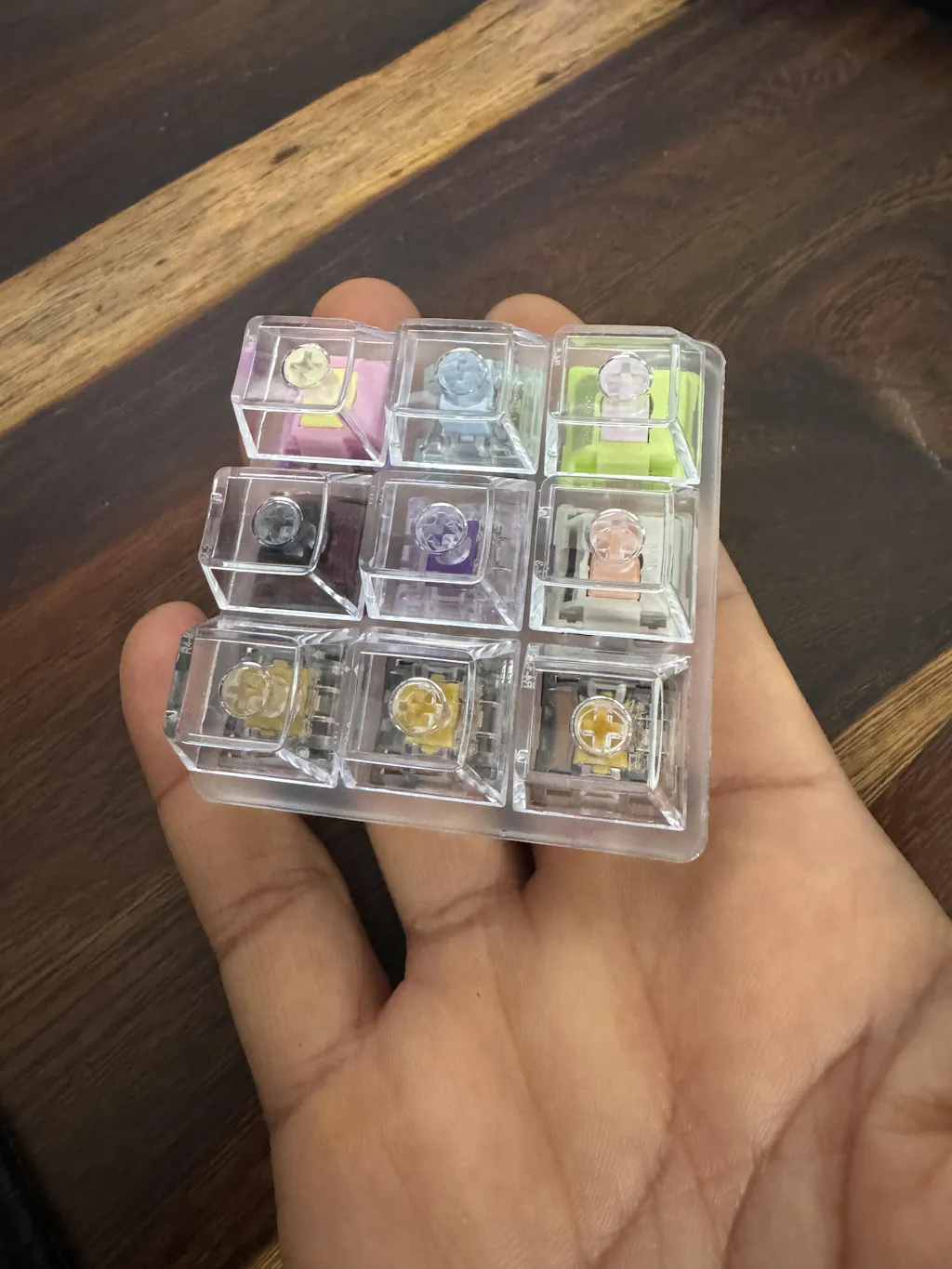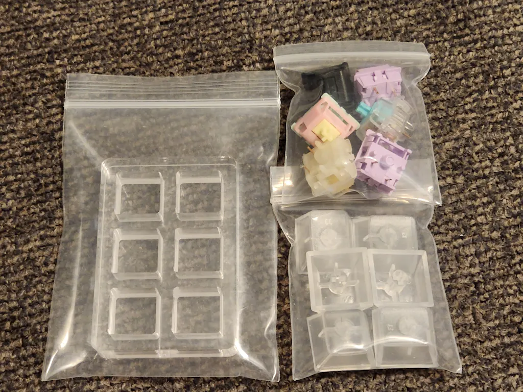 You have a choice of 4, 6, 9 or 16 switches (acrylic base included) and an option of adding clear ABS keycaps at an additional charge.